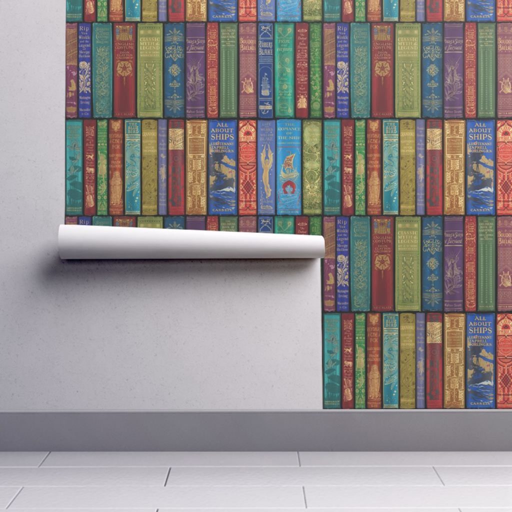 Final, however not least, one other tackle the brightly coloured books wallpaper. $5 and up.