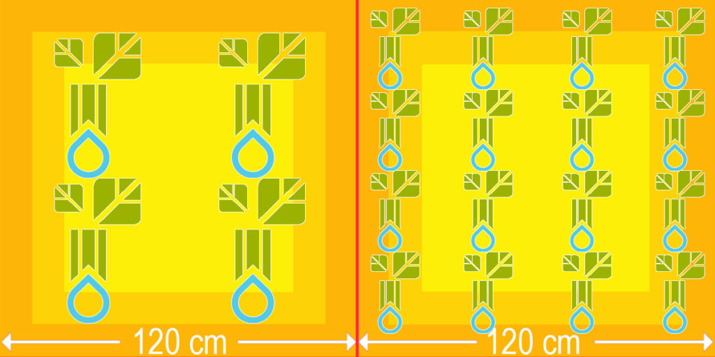 keep on with the system of four massive vegetation/16 small vegetation per gentle or per 1.2m x 1.2m