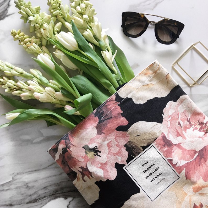 Readers all the time want extra totes, so enter this excellent floral John Keats quote tote. $24.