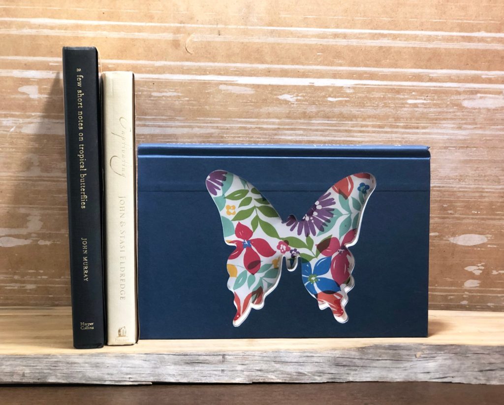 This repurposed ebook artwork includes a butterfly and would look so fairly on a bookshelf. $20.