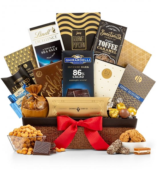 Premium confections are paired with savory fare, neatly organized on this elegant and rustic memento woven basket. These gourmand provisions promise to depart everybody with an impression that’s positive to demand an encore.