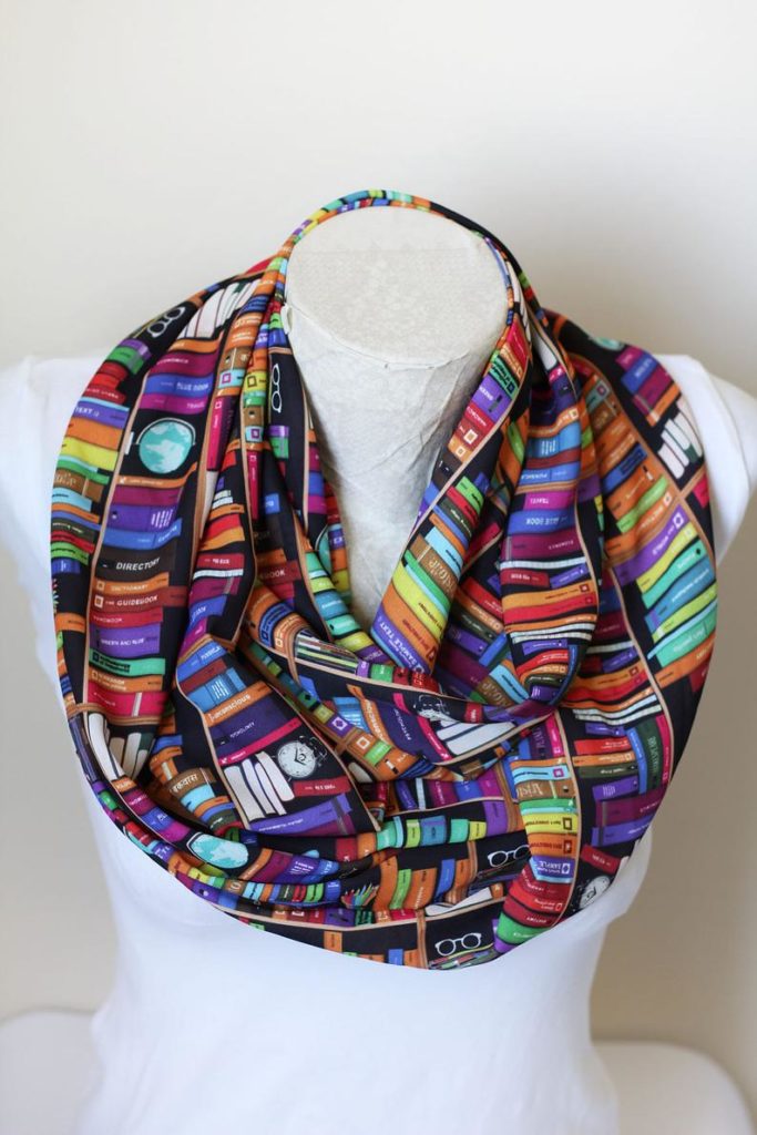 Discover dozens of bookish infinity scarves at Storiarts, together with this Anne of Inexperienced Gables scarf.