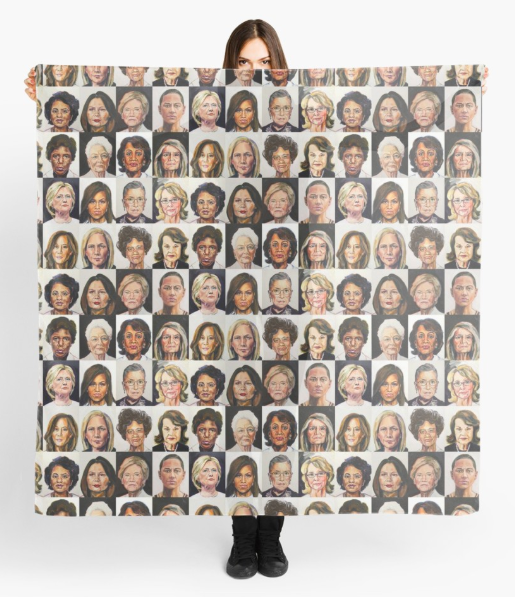 Artist TL Duryea paints a political portrait on daily basis, and this Sheroes Scarf is stuffed with ladies who will likely be in historical past books.