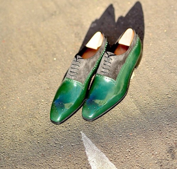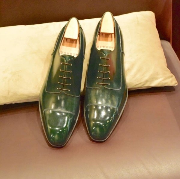 Parisian shoemaker, Aubercy, makes a really superior shade of inexperienced leather-based. One which they the truth is, use a ton and that I like to see. It’s a really deep, darkish Emerald like inexperienced that’s extra vivid than most inexperienced shades on the market. You don’t typically discover so many field calf skins in inexperienced (pre-dyed within the tannery) so what you have a tendency to search out is it being dyed after the actual fact on a crust leather-based. Crust leathers, though lovely, don’t get as obtain the dye as deep and profound as a field pores and skin does because the tannery dye within the drums goes a lot deeper and stronger into the leather-based.