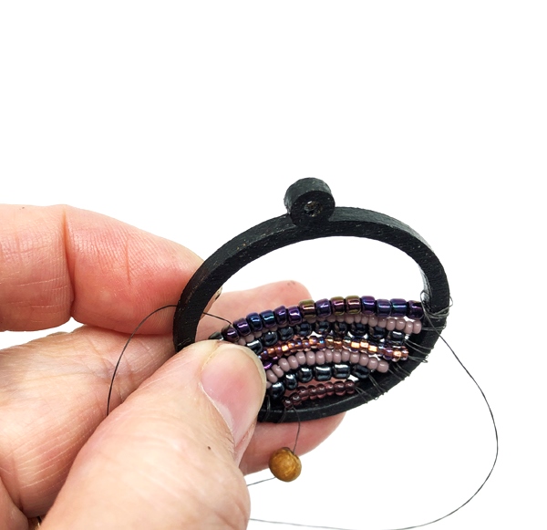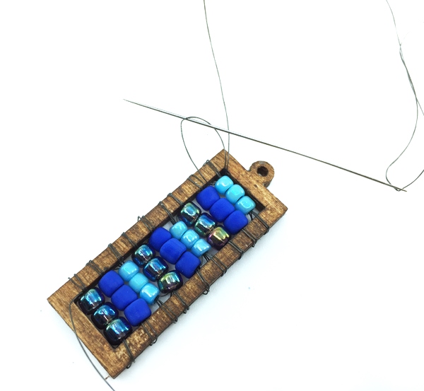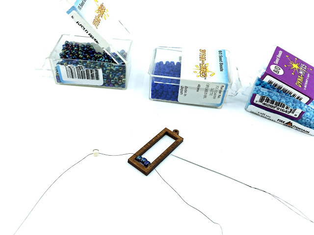 The beading could be very simple.  I used a beading needle, 6 lb Fireline in the dead of night coloration, eight/zero seedbeads and my smaller rectangular frames which I had beforehand stained a darkish walnut coloration.