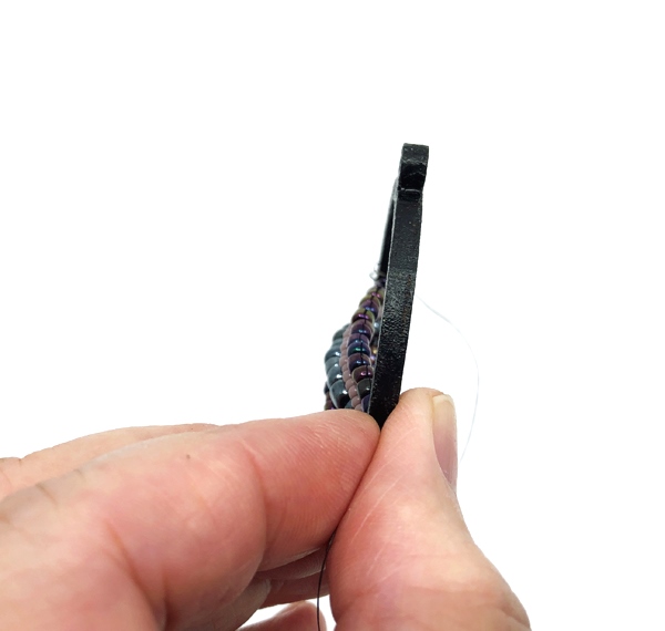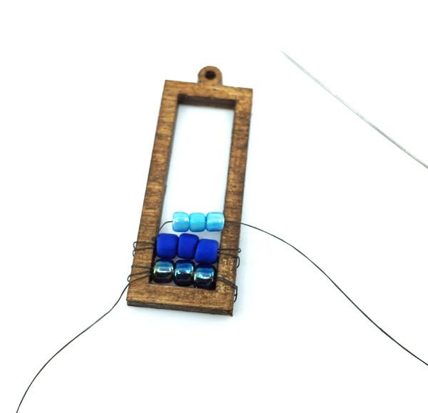 I wrapped the Fireline on the left aspect of the body after which threaded via the identical beads going from left to proper.  I then picked up the subsequent set of beads, repeating the double go.