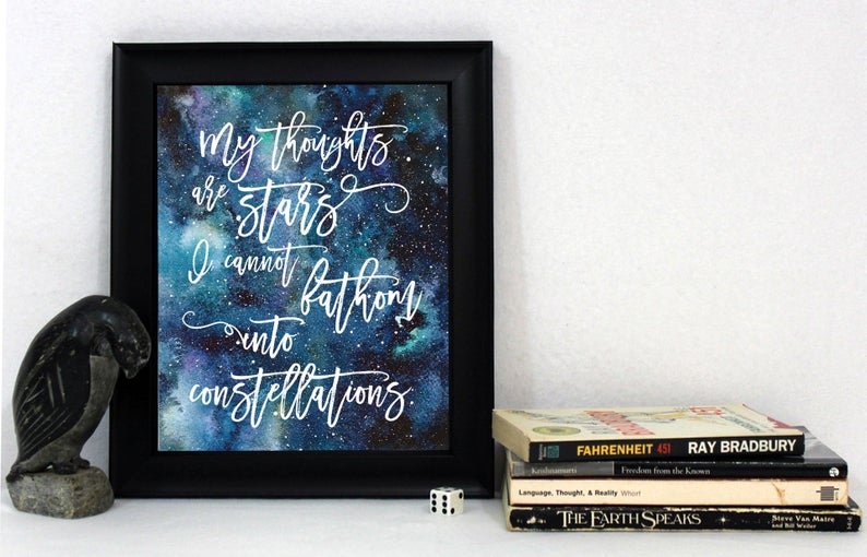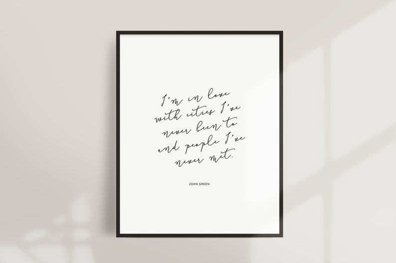 Look, generally you simply must take pleasure in some stunning John Inexperienced quotes, and possibly get these quotes was dwelling decor. I’ve a stunning “My ideas are stars I can’t fathom into constellations” hanging above my desk, subsequent to my Hemingway “Write drunk; edit sober” print. I have a look at them day by day and really feel comforted. And after I’m writing, and get pissed off, I simply lookup and see these two prints and really feel higher. I can do it.