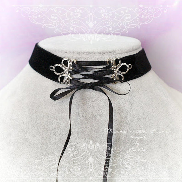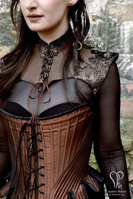 The corset concept has been given a female contact with this gothic choker corset design by MiaDressShop. Intelligent use of metallic parts.