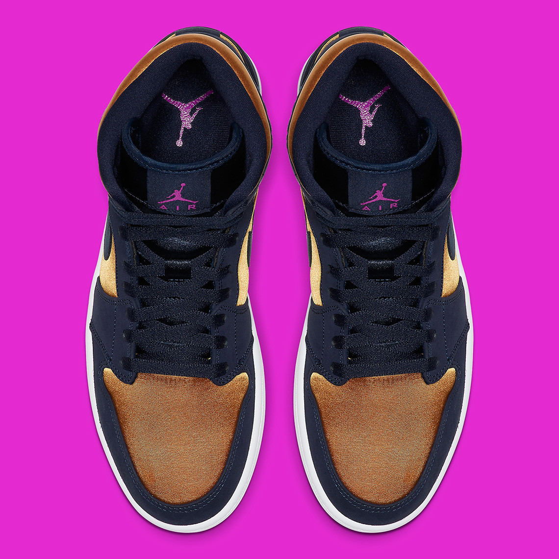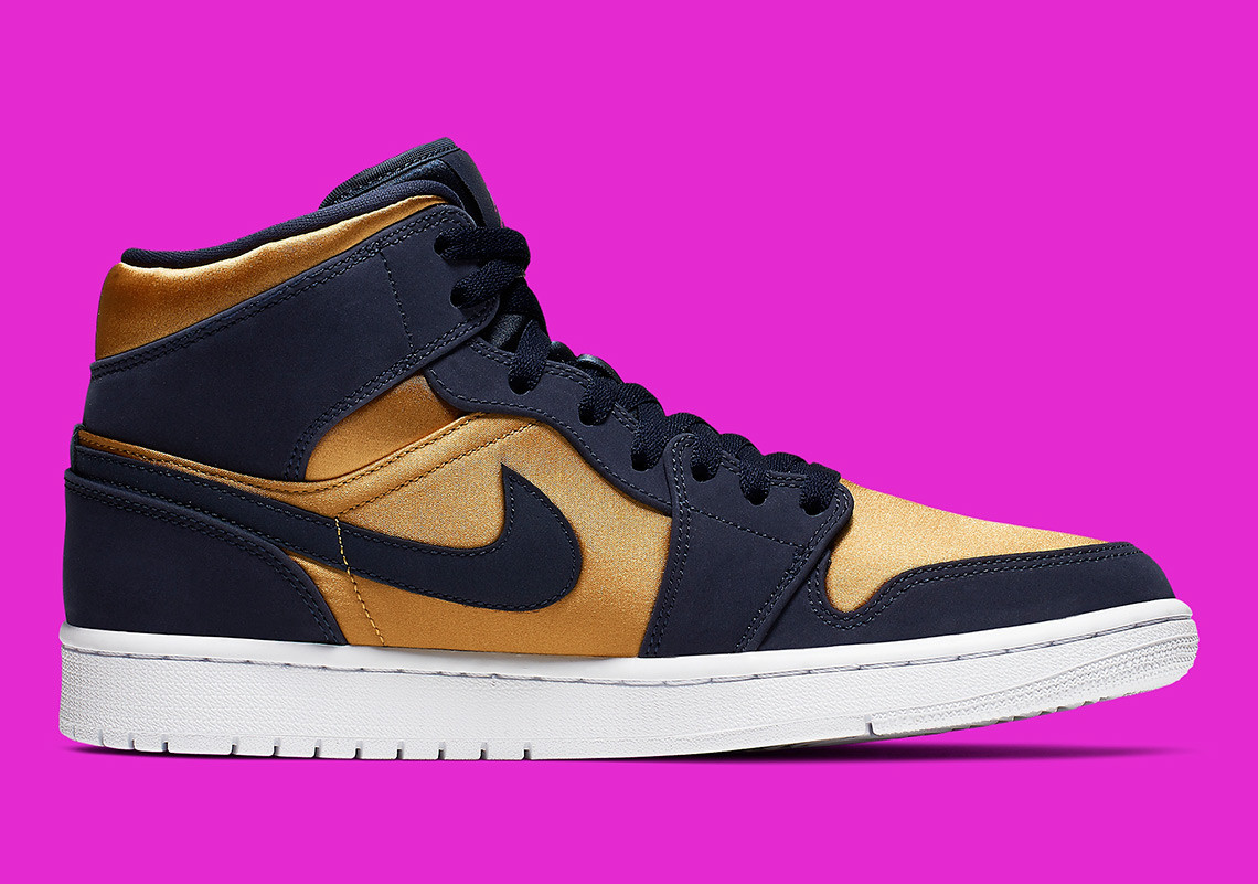 The Air Jordan 1 Mid Pairs Navy With A Satin Gold End