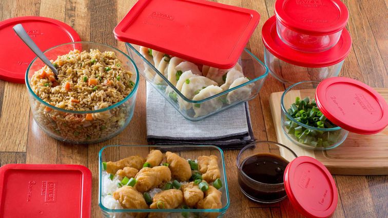 This 14-piece Pyrex set is ideal: each microwave and dishwasher secure.