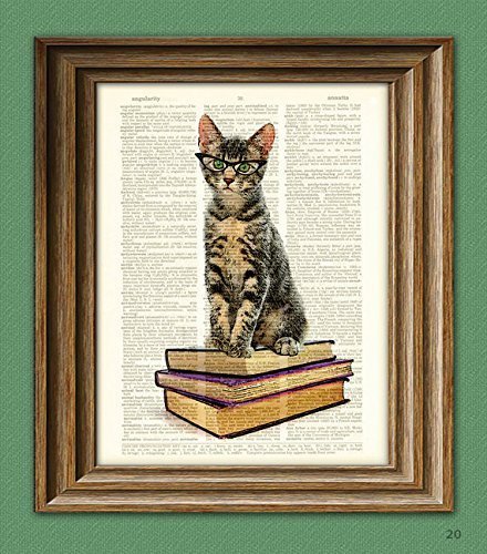 I’m a cat girl and make no apologies for it. So this print constituted of a ebook web page and that includes a cat, glasses, and books is a should purchase.