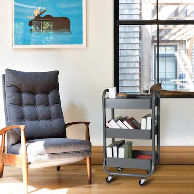 When you can’t match a bookshelf in there, however nonetheless want ebook storage, a ebook cart is likely to be your finest answer. Even with a bookshelf, these carts are nice for some additional storage (or for rolling some snacks and a drink with you).