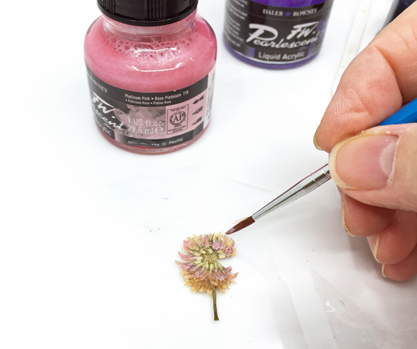 You can too contact up with acrylic ink which is far more delicate than acrylic paint. My favourite and the one I used is Daler Rowney’s Artist acrylic inks with pearlescent impact. Let it dry earlier than continuing.