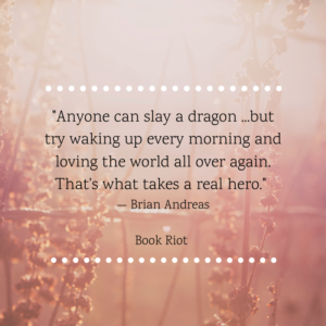 “Anybody can slay a dragon…however strive waking up each morning and loving the world over again. That’s what takes an actual hero.”
