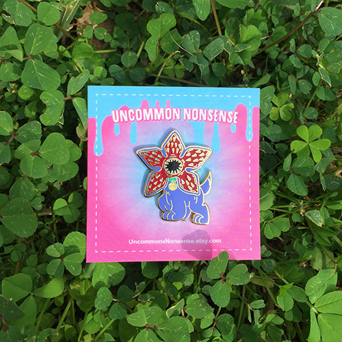 Add a contact of terror to your wardrobe with this Demogorgon pin. $9.00