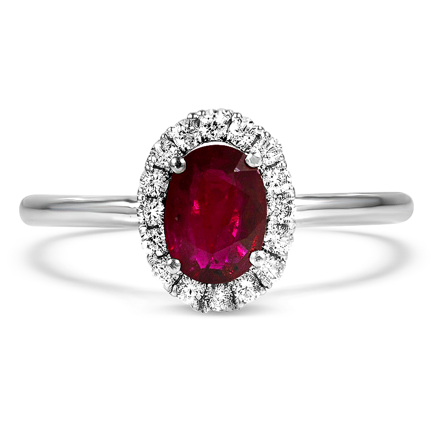 This beautiful Fashionable property piece encompasses a halo of 16 good reduce diamonds that shimmer round a richly coloured oval ruby. The lustrous 14Ok white gold of the band compliments the diamond halo and permits the middle ruby to be the focus of this ring.