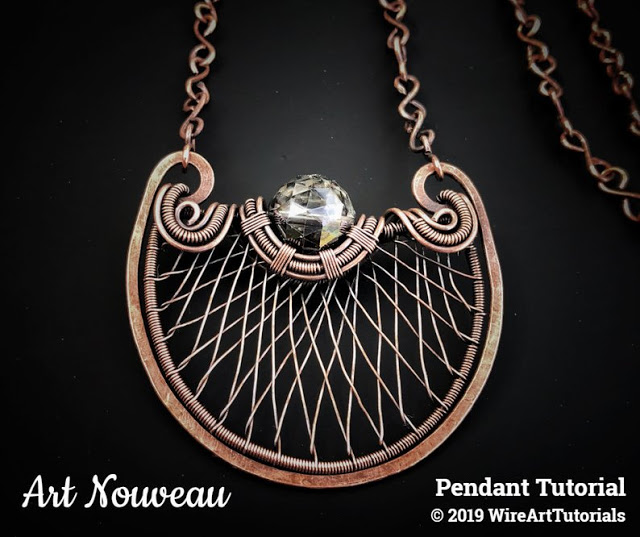 I see Artwork Deco echos in the principle stem space and the criss crossing of wires of this stunning pendant once more by Erika Pal of WireArtTutorials. Erika referred to as it her Artwork Nouveau pendant. Artwork Nouveau predates Artwork Deco.