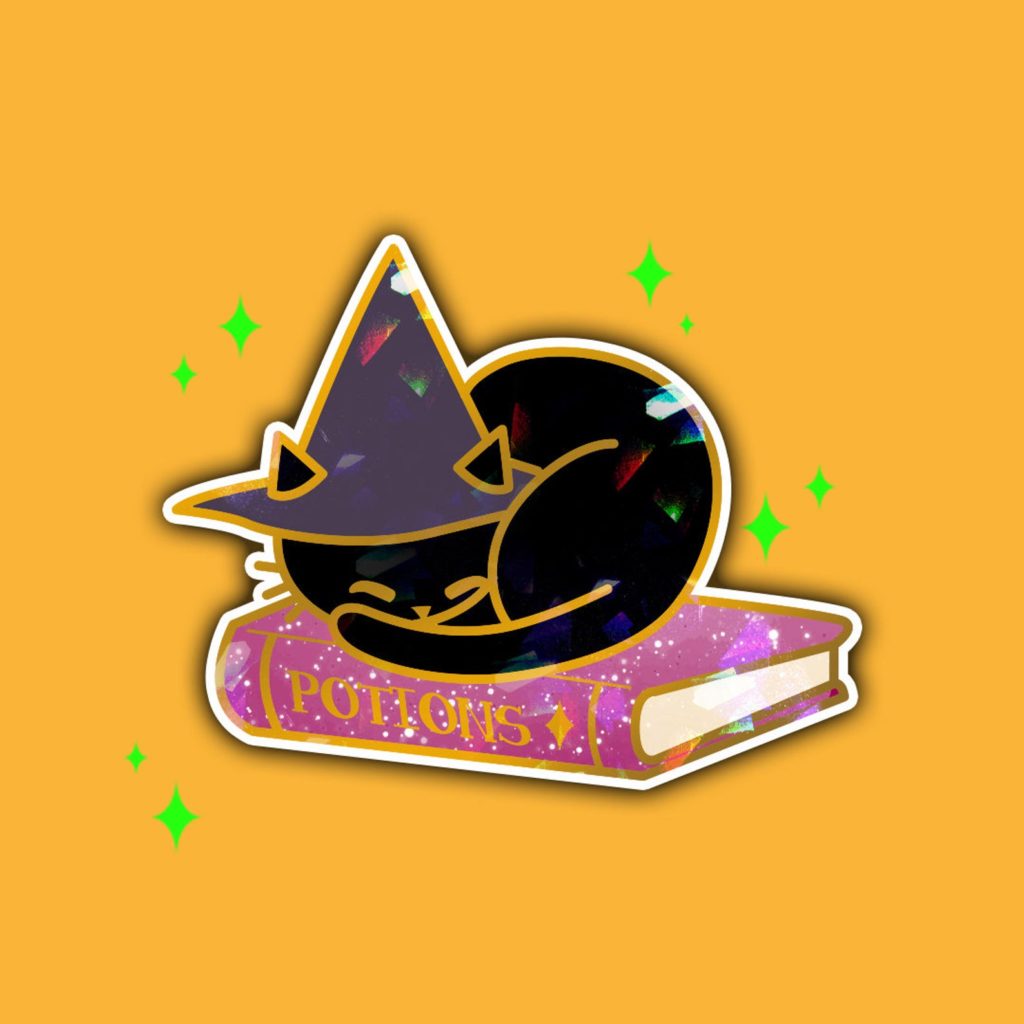 This witchy, bookish kitty sticker is ideal for readers who love spooks and scares. $5.