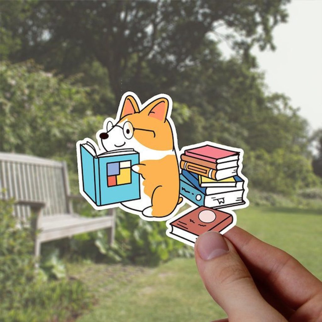 This studying corgi is simply too lovely. $three.50 and up in various sizes.