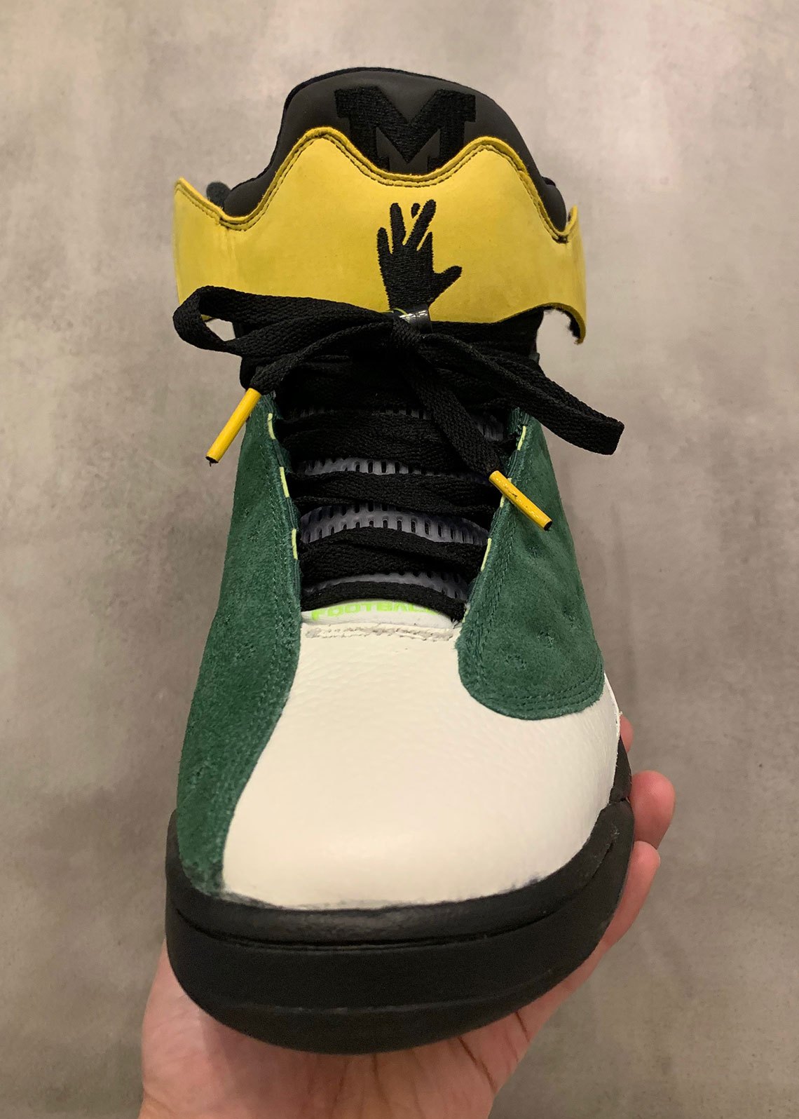 As Dan prepares for a brand new function throughout the firm, Mark Smith and his Nike colleagues crafted a farewell reward referred to as the “Woo-zike” (a play off the Spiz’ike, a Smith authentic creation), a hybrid mash-up of all of the sneakers that he’s contributed to previously. The left shoe is a mix of 4 faculty PEs (Fab 5 5s, Oregon 5s, Oregon 6s, Oregon 13s), whereas the appropriate is predicated on the Professional Leather-based with a AJ3 “Korea” tongue, Air Max Susan mudguard, and an Air Jordan 1 heel (a forthcoming mission). Examine ’em out beneath.
