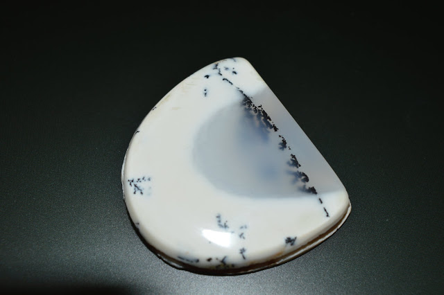The gorgeous grooved white lace agate cabochon proven right here is on the market from CieloGemStones as is the dendritic agate which follows.