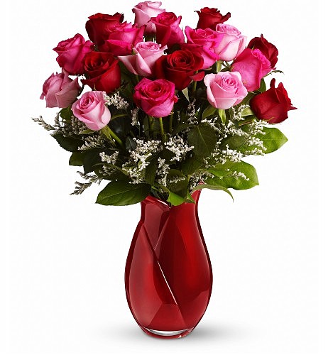 Delivered in a ruby glass vase that your Valentine will treasure eternally! Plus, each shade of affection is introduced within the Sweetheart Roses Bouquet.