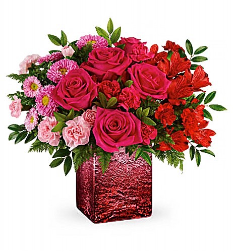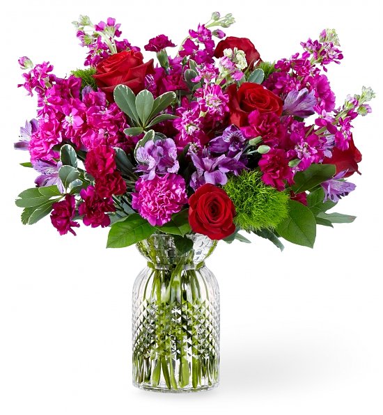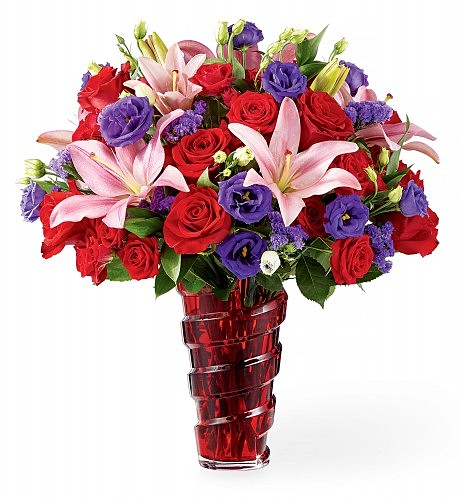 Falling For You Bouquet: Beautiful shades of vivid pink, purple and crimson are poised with lush greenery. Really, this creates a hanging distinction for Valentine’s Day, particularly with the artwork deco vase.