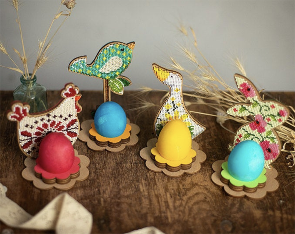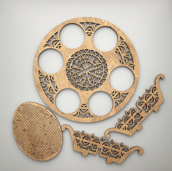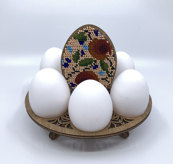 These are the laser minimize and pre-stained wooden elements of the Easter egg holder. The minimize outs are pretty. You should use it as is or paint it to a shade you favor.