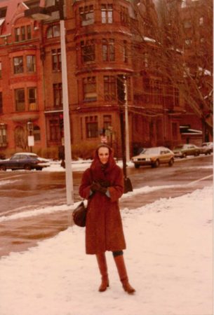 Ida on Commonwealth Avenue within the snow, Winter 1984 (classic Schiaparelli Persian lamb)