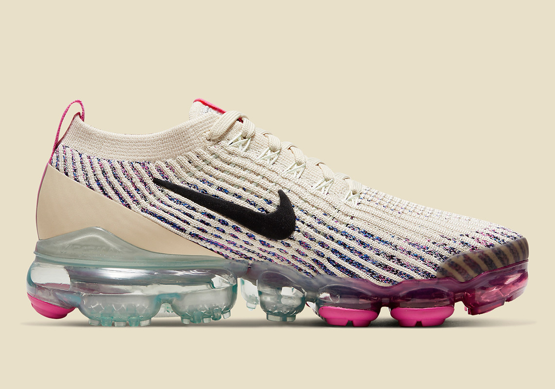The Nike Vapormax Flyknit three Provides Fossil-Toned Knits And Pink Flash Accents