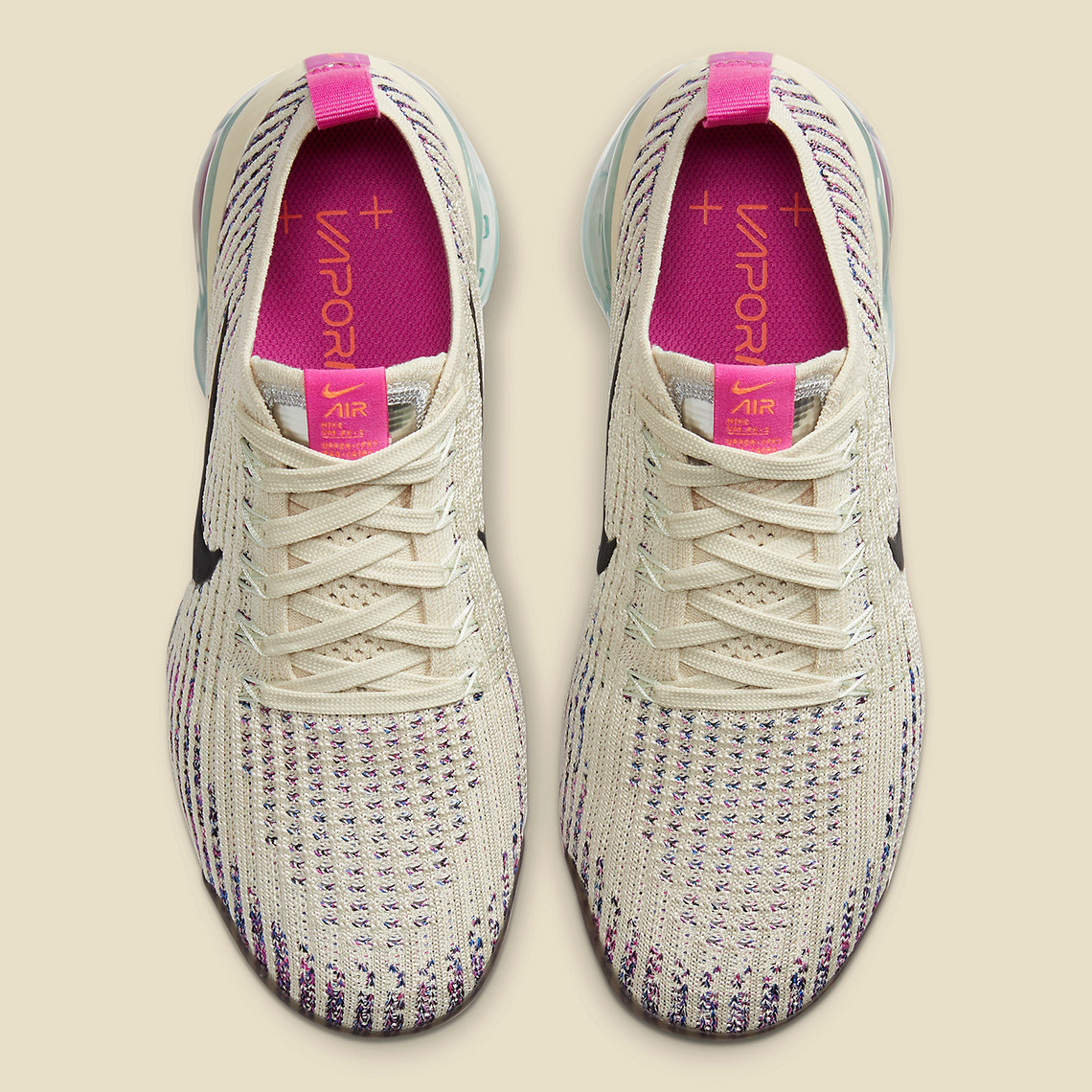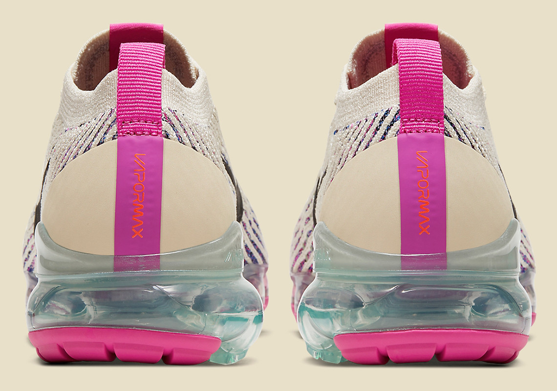 The times of the sunnier Spring and Summer time seasons are fortunately quickly arriving, and in preparation of the instances the place we are able to retailer away our winter coats, Nike has been hinging upon brighter pigment mixtures to fashion up their most up-to-date Sportswear releases comparable to their Vapormax 360, AM 720, React Imaginative and prescient, and extra. Becoming a member of in on the prepare is the Vapormax Flyknit three, who after getting outfitted in full tonal pink, is now going for a “Fossil” centered colorway paired with a myriad of colourful accents. The stand out hue definitely is the dinosaur bone pigment that dominates the higher’s knitted constructions and heel piece, however from a close-up view, you’ll discover that falling between its linear stitchings arrive a group of blue, purple, and pink hits that nearly name upon an analogous chippy look to the midsole scraps infused into the Swoosh’s upcoming House Hippie assortment. Ending off its beach-ready look is the Air unit that splits between barely teal translucency in direction of the heel, and highlighter neons positioned to the forefoot. Seize an in-depth look right here beneath, and count on them high drop on Nike.com and at choose retailers on March 12th for $200.