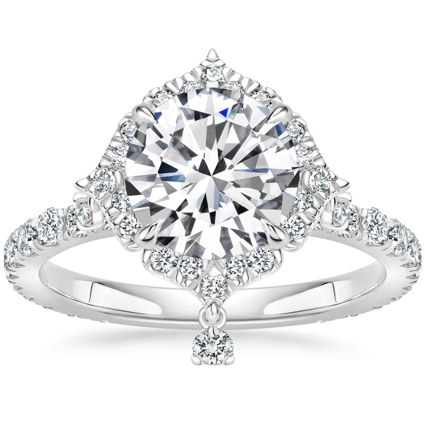 With articulated drops dangling from a distinctively formed floral halo, the Summer time Rain Diamond Ring expresses the motion of rain droplets dewing on flower petals. Ryan Atlas, Director of Product Improvement, particularly appreciates that the design is surprising with “shock diamonds that dangle and catch gentle beneath the 4 factors of the halo.” This ring is exclusive and considerably experimental, in that it’s the first ring the crew has designed with motion – on this case, the dangling accents.