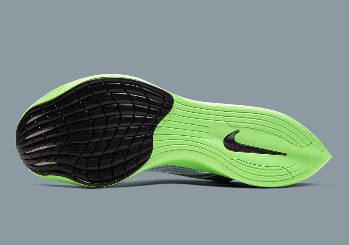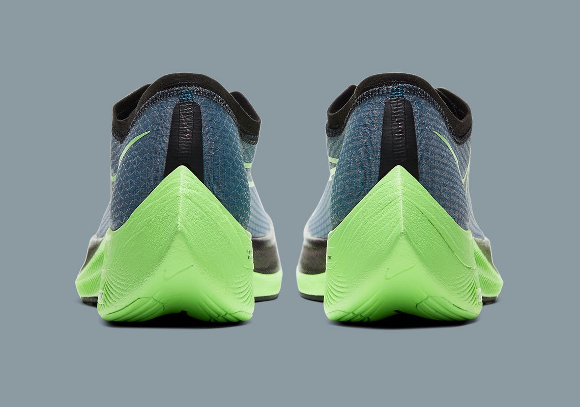 Akin to the forthcoming Air Zoom BB, AlphaFly NEXT% and Zoom ViperFly, uppers on the almost-banned mannequin are clad in “Valerian Blue” and “Black.” The ZoomX Vaporfly NEXT%‘s clear VaporWeave, nevertheless, highlights the previous. Grid patterns all through work in tandem with “Vapour Inexperienced” trimmed profile Swooshes so as to add visible bulk to the light-weight mesh. Asymmetrical lace guards function an oily purple paying homage to the Air Penny V “Invisibility Cloak.” The eggplant hue additionally takes over a part of the full-length, carbon-fiber plate-infused “Vapour Inexperienced” midsole.