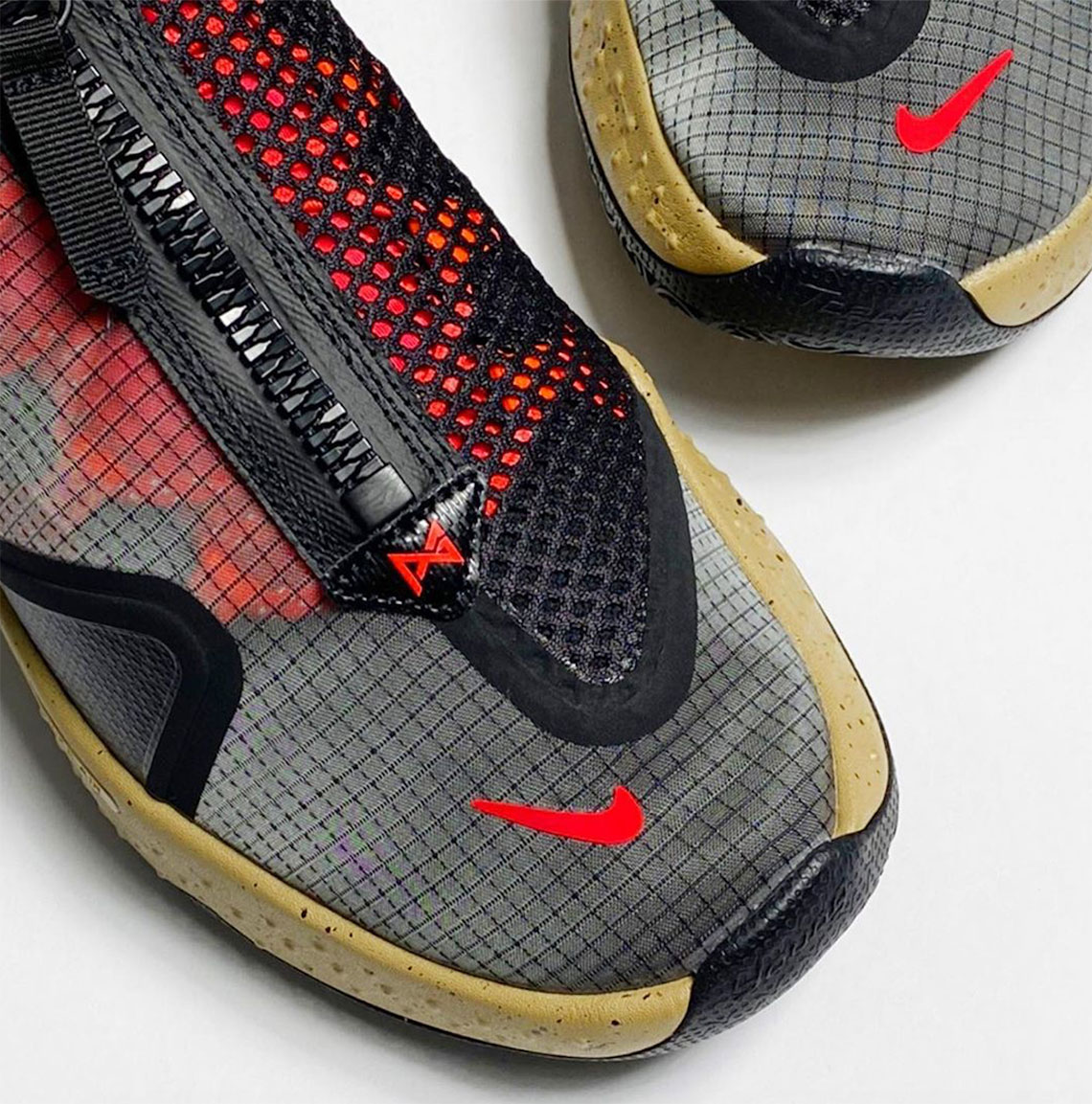 Seen right here for the primary time, the PG four “PCG” makes use of a clear higher with black netting, exposing the crimson “ribs” on the inside that present the lace lockdown. The midsole is painted a muddy tan.brown hue, whereas a miniature forefoot Swoosh is positioned on the very base of the zipper. A launch date is unknown, however prone to arrive this Summer time.