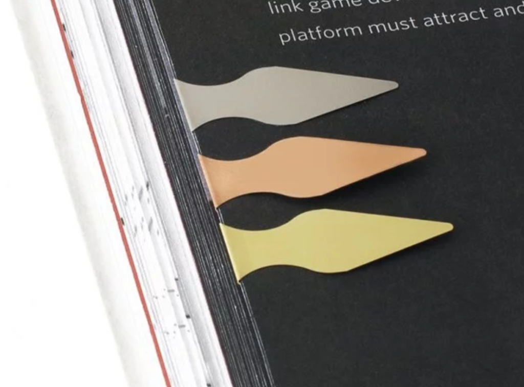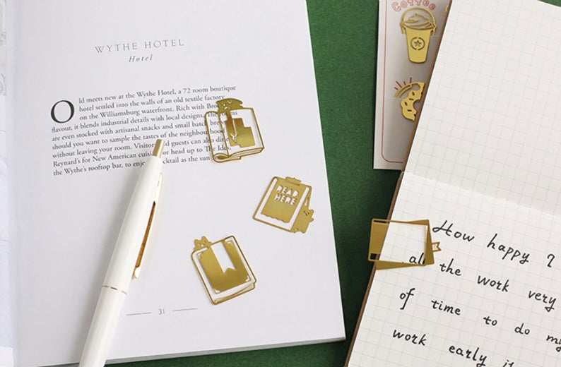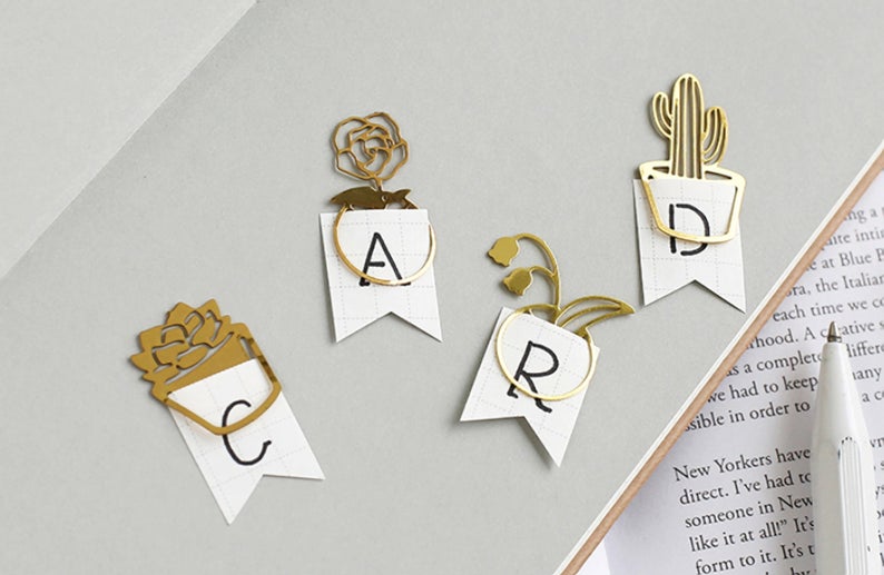 Final, however not least, choose up a set of those teardrop web page markers. You possibly can select gold or black, and both would look nice in your guide. $2.40 for six.