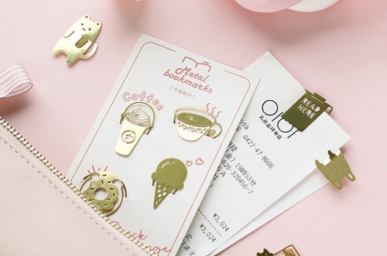 I needed to embrace images of all of the lovely choices with these metallic web page markers. You may get espresso and ice cream! E-book themed! Bears! Crops! These’ll set you again $7.30 for every set.