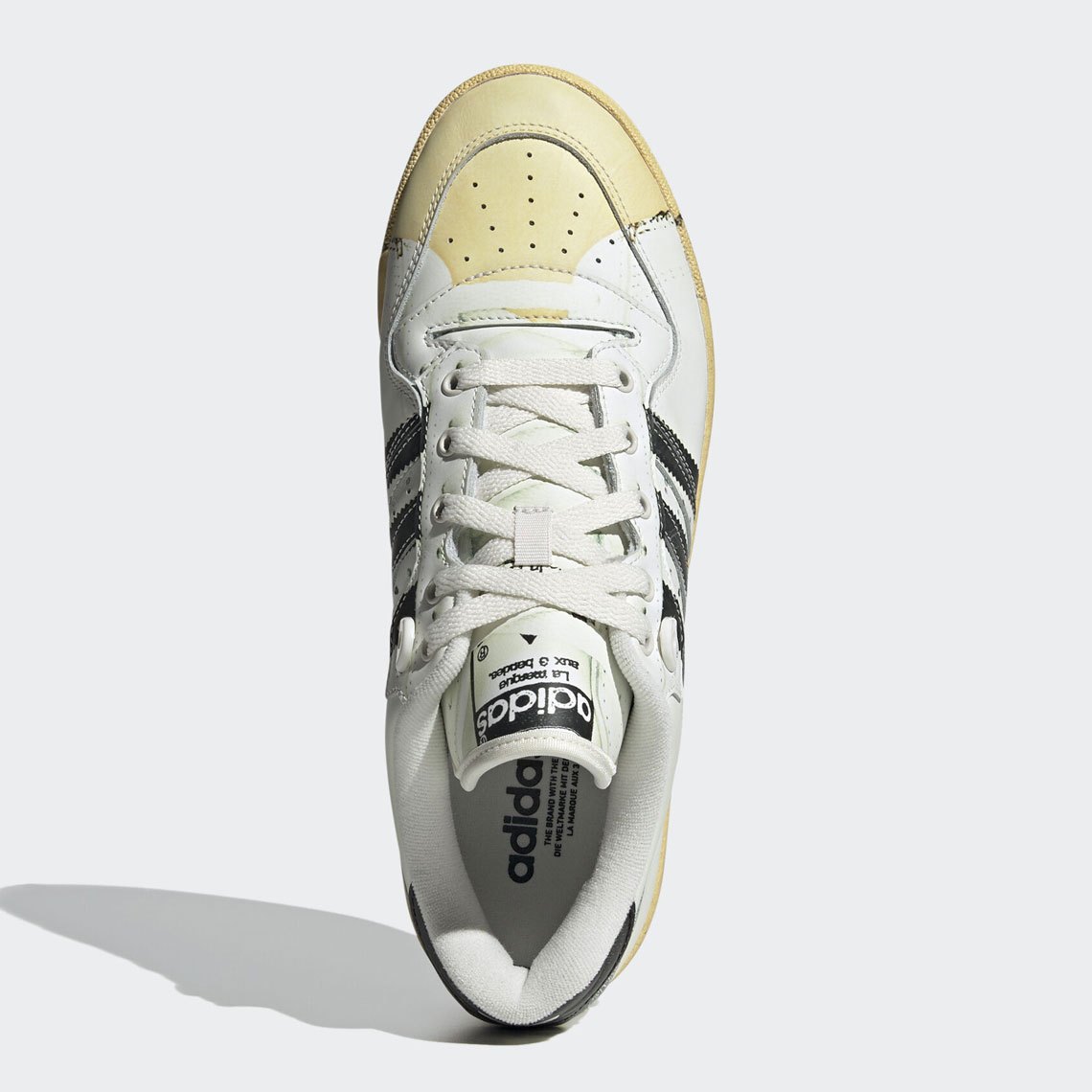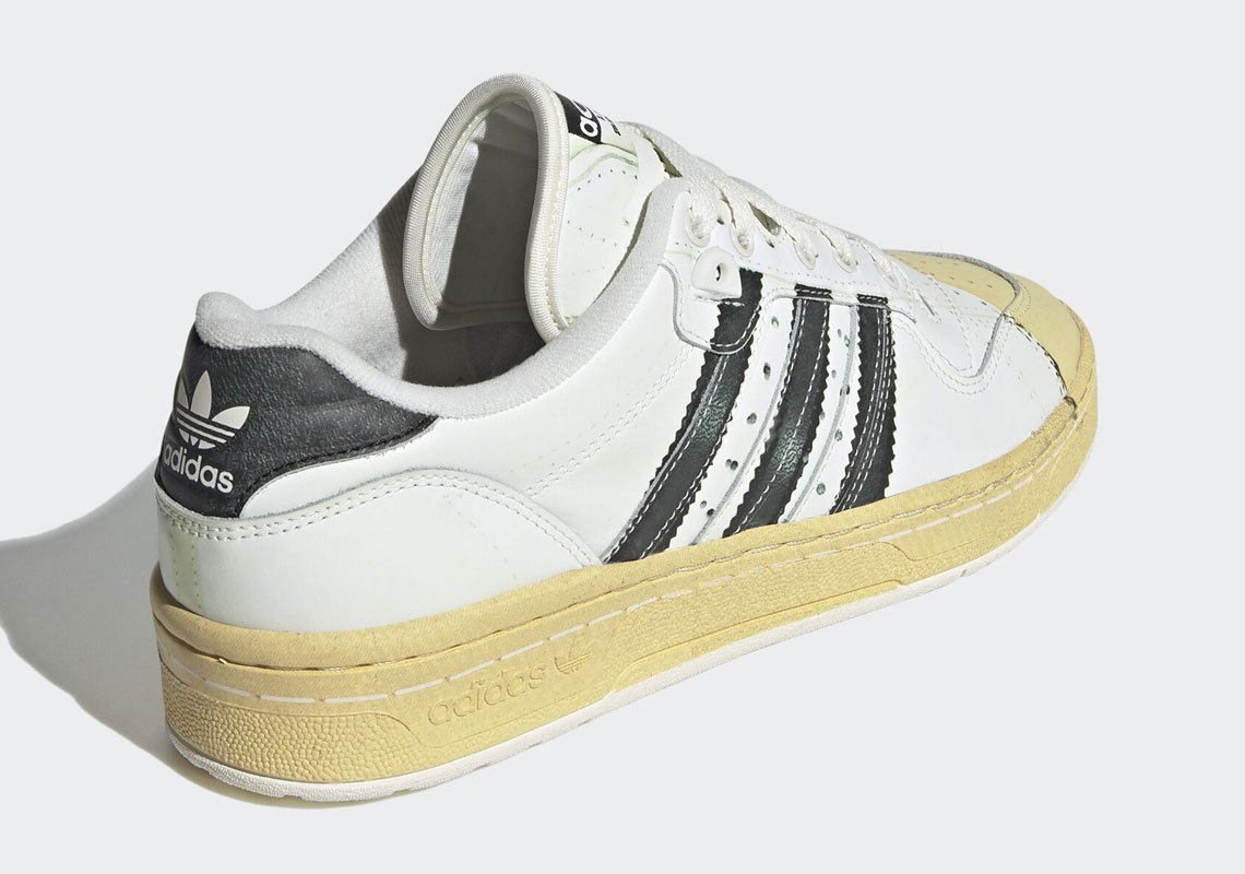 Although clad within the Celebrity’s iconic “Footwear White” and “Core Black” association, the low-top Rivalry retains a number of of its signature particulars intact. Bolstered toe ideas and heel cups are constructed with easy leather-based, although the previous’s incorporates a yellowed, shell-toe-like form. Branding throughout the midfoot, tongue and rear forgo any of its 1980s aptitude in trade for probably the most blatant nod to this pair’s 50-year-old muse. Midsoles and outsoles, although additionally given some classic remedy, harken again to the Rivalry’s basketball heritage, as they hold their tried-and-tested tooling and pivot factors, respectively.