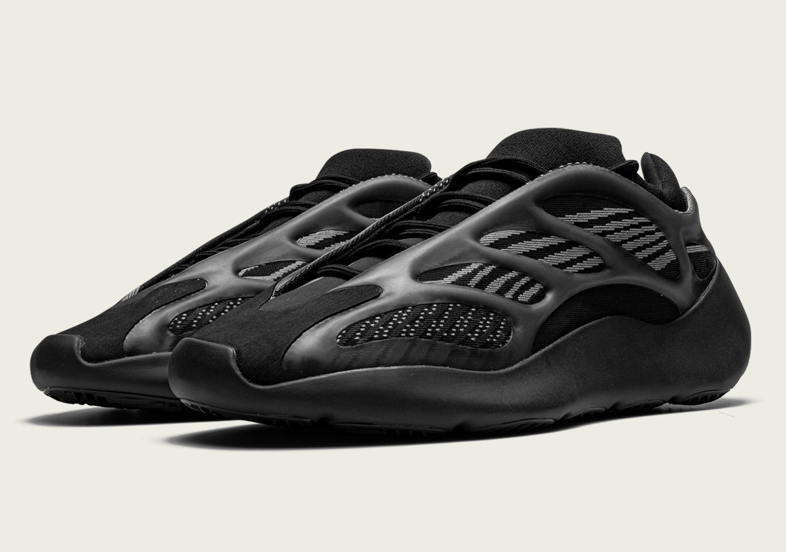 Like its “Azael” predecessor, the Yeezy 700 v3 Alvah retains its colorway easy. Primeknit bases and their combined materials overlays are clad in black, save for the YZY QNTM-like detailing throughout the profiles. Midsoles, which up the chunky ante from the Yeezy 700 v2, additionally partake in the dead of night makeover. Outsoles, nevertheless, characteristic cutouts that reveal yellow, non-Increase cushioning that not solely additional interrupts the tonal association, but in addition makes the mannequin extra inexpensive than earlier variations of the Yeezy 700.