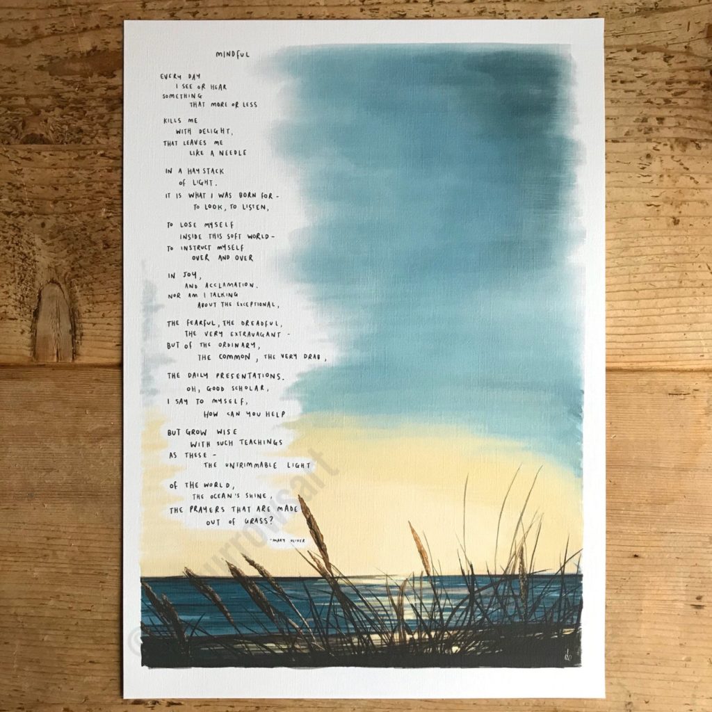 This portray is beautiful, isn’t it? Pair it with Mary Oliver’s “Conscious” and also you’ve bought one thing actually particular. $14.25 and up with dimension choices.