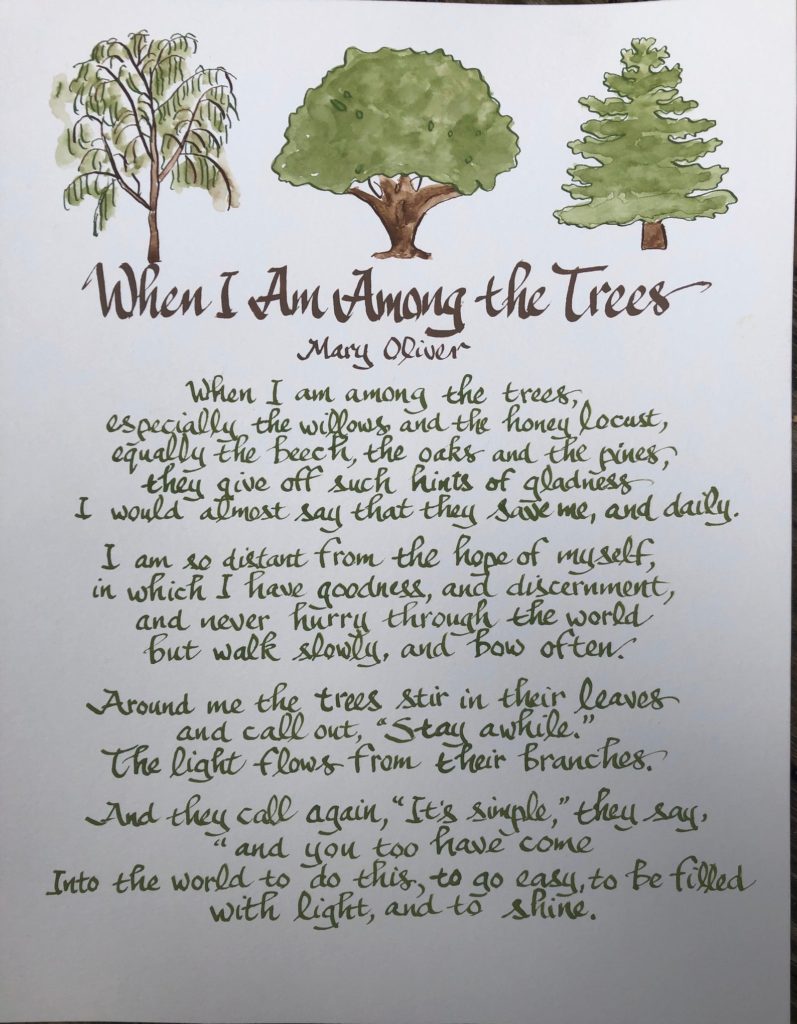 Such a wonderful watercolor rendering of “Once I Am Among the many Bushes.” $40.