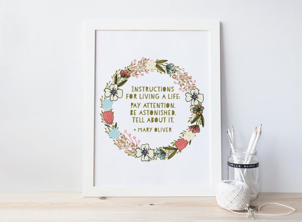 This downloadable print is without doubt one of the most memorable Mary Oliver strains: Concentrate. Be astonished. Inform about it.” $5.