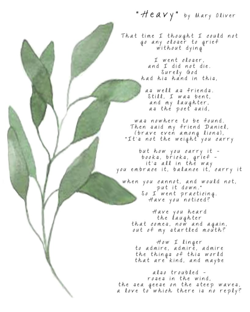 From Mary Oliver’s “Whispered Poem.” $eight.