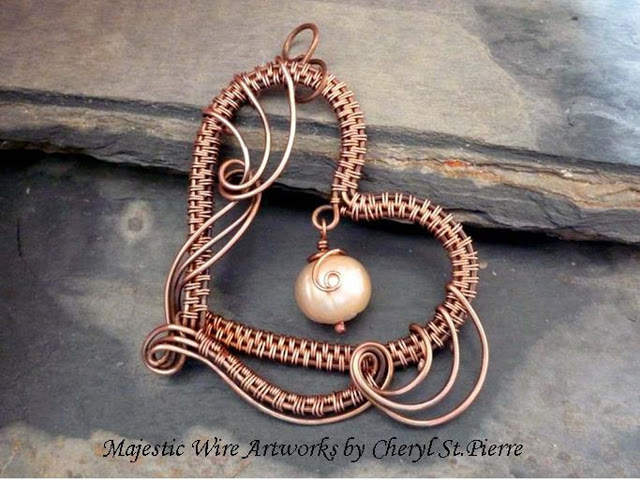 Canadian wire artist, Cheryl St Pierre, of majesticwireartworks has an exquisite expertise of mixing wire woven components to daring, open swirls of wire. Her tutorials are a boon for many who are studying to work with wire.