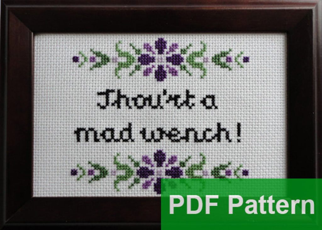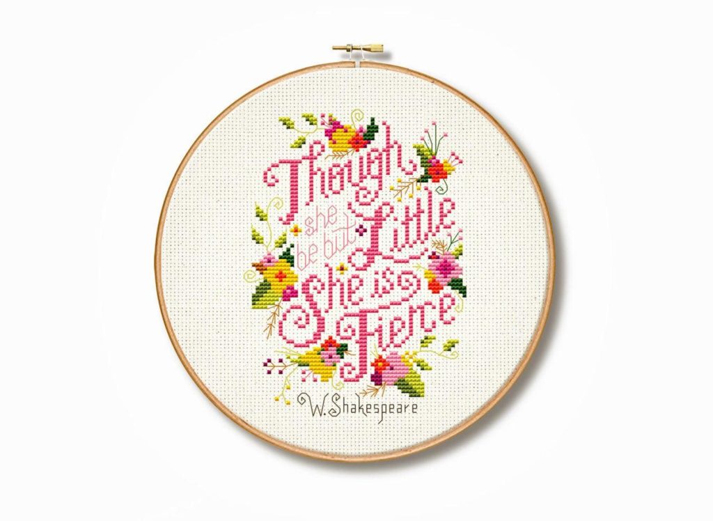 For rookies, check out this “Although she be little, she is fierce” cross-stitch. $four.