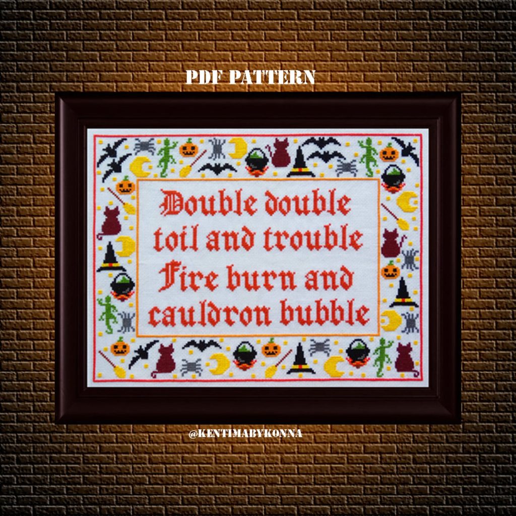 This is perhaps my favourite of the bunch. Superbly witchy, spooky, Halloween vibes for this Macbeth witches cross sew. $6.