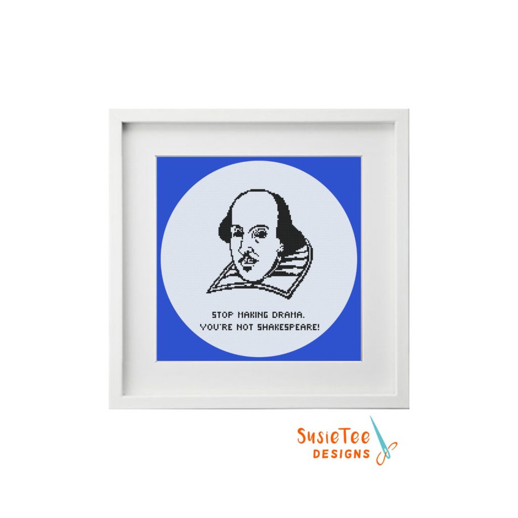 This sassy cross-stitch is nice: “Cease making drama. You’re not Shakespeare.” $four.50.