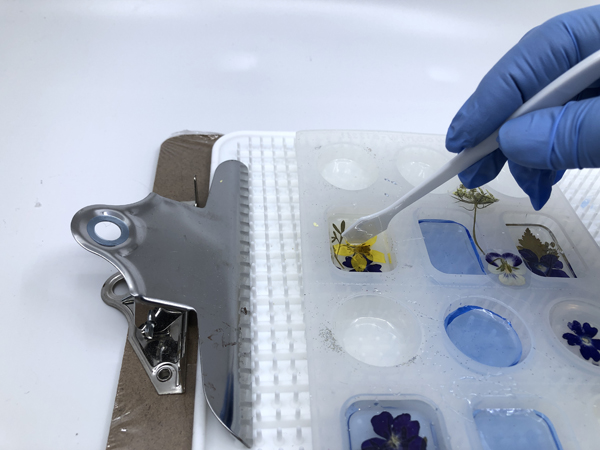 Discover I place the mildew on their silicon doming tray? This catches any drips that are straightforward to take away after they remedy. A tip I discovered from Fran is to place the doming tray on clipboard. You’ll be able to then preserve the tray stage as you progress it someplace protected for curing.