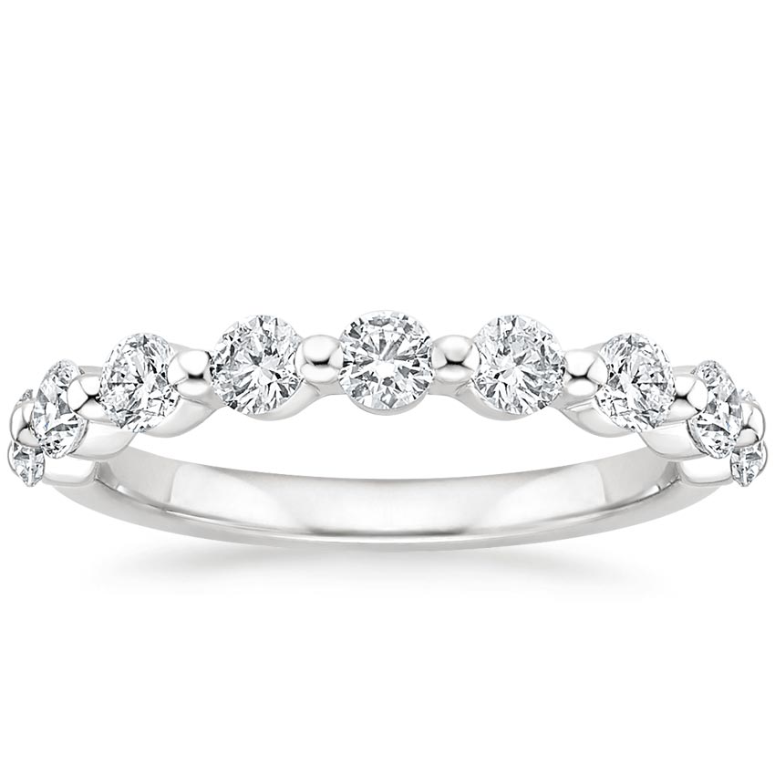 Floating shared prong lab created diamonds shimmer from the highest half of this delicate and dazzling band for a spectacular look. It’s stunning as a marriage band, anniversary ring, or as a simply because ring!