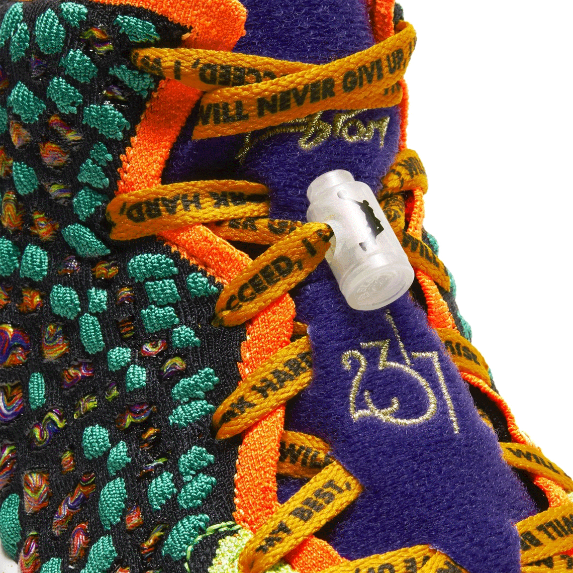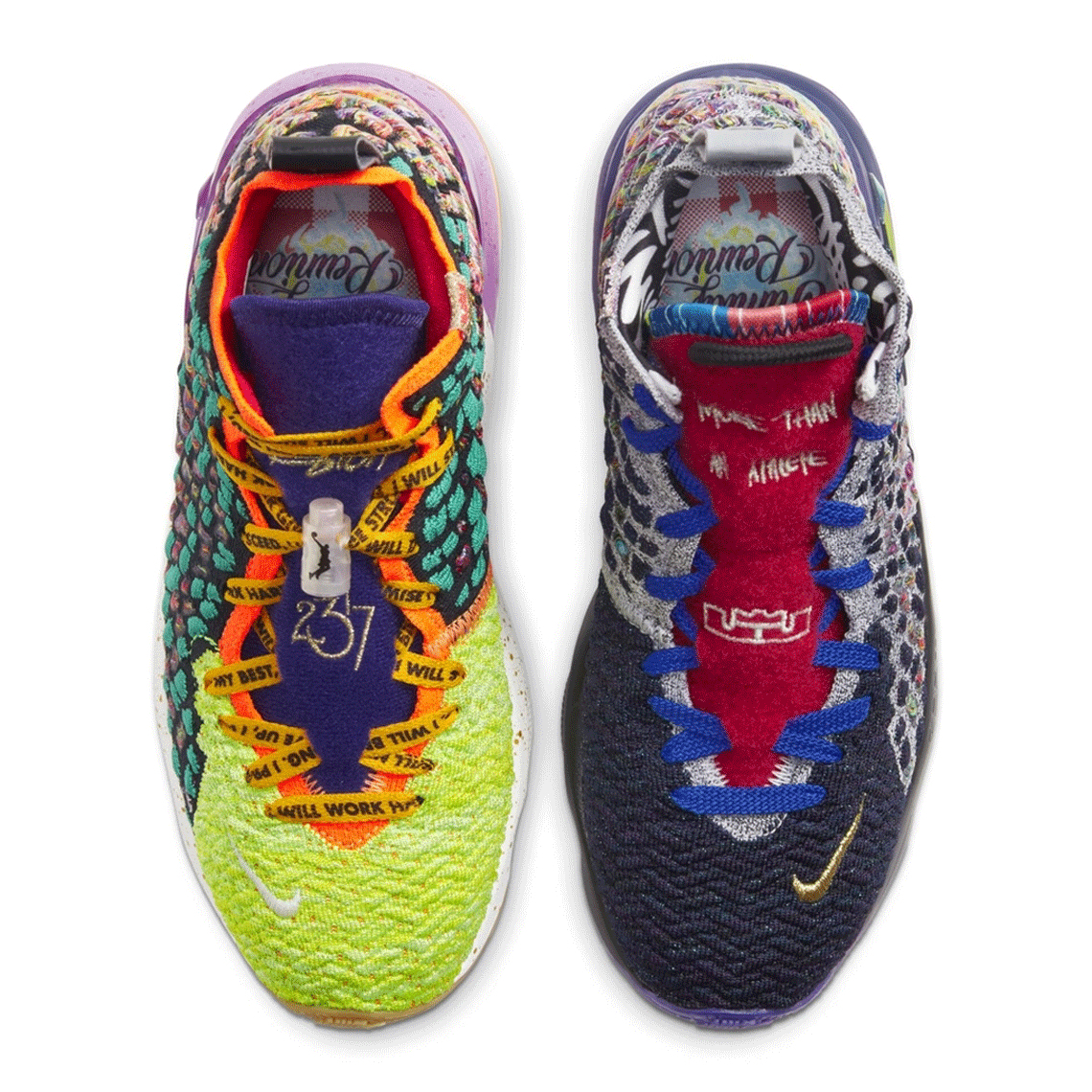Clad in a mash-up of over eight completely different releases since September 2019, the “What The” LeBron 17 continues a convention began with a LeBron 9 pattern. Left footwear take pleasure in a darkish shade scheme, using black and gray Knitposite from the December’s “Forex” and January’s “I Promise” pairs, respectively, in addition to sole items combining previous black, purple, and pink preparations. Scarlet tongues boast James’ “MORE THAN AN ATHELETE” motto, simply as proper shoe’s purple tongues are complemented with yellow laces clad in motivational phrases. Elsewhere, equally daring “Mr. Swackhammer”-like toe containers and teal rear panels infuse a vibrant palette into proper footwear. Mild gum brown outsoles and their surrounding multi-colored tooling additional distinction their left counterparts. “REMOVE BEFORE LAUNCH” hangtags and an array of detachable-Velcro patches add yet one more playful spin to this upcoming LeBron 17.