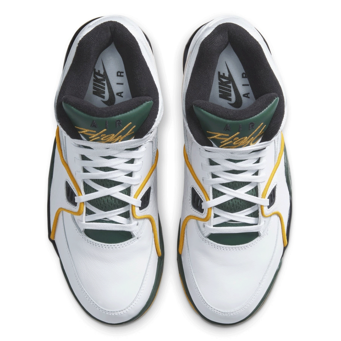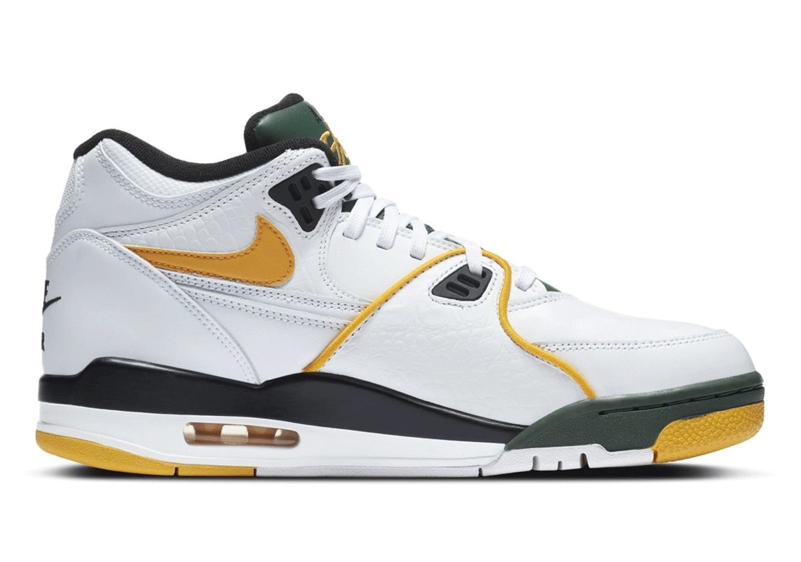The Nike Air Flight 89 continues its 31st Anniversary with one other colourful ensemble. Not like earlier pairs impressed by town of Chicago or outer area, the silhouette’s newest outfit boasts a yellow and inexperienced shade scheme ostensibly based mostly on the Seattle Supersonics’ crew colours.